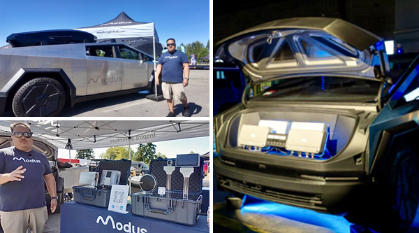 Continuing “Underneath the Modus tent, we displayed the system that’s in the Cybertruck which was on live in the booth. We also made a special T-shirt that we offered to attendees. As we were doing a demo with them, we gave them a T-shirt if they made a social media post during the demo.”