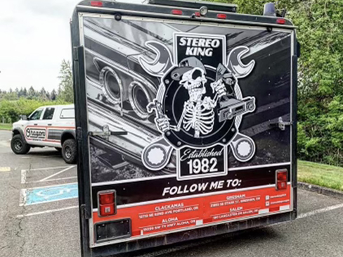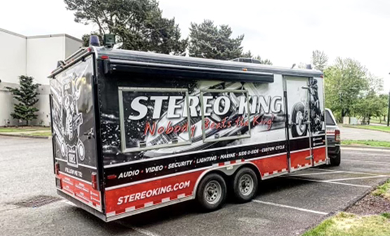 HAPPY VALLEY, OR (05.14.2021) – Stereo King recently finished a customized 26’ trailer with attention grabbing graphics. The new trailer will be utilized to increase awareness at the retailer’s multiple locations plus consumer events in the area. Stereo King has 4 stores in Oregon plus Dicks Stereo in Boise, ID.
