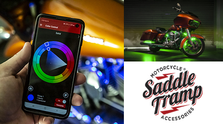 HOLLY HILL, FL (03.25.2021) – Saddle Tramp by Metra Electronics is now shipping a new plug-n-play RGB lighting kit designed for 1996-up* Harley-Davidson Touring models. The BC-RGB-K1 is a 12-piece kit that can be controlled via the Metra RGB smart device app for 16 million different color options, preset lighting transitions and flash patterns, the ability to flash the lights to music, and more.