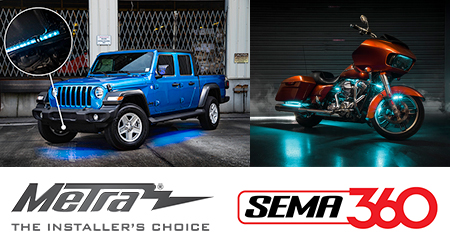 HOLLY HILL, FL (11.02.2020) – Metra Electronics is launching new dash kits, aftermarket accessories for Jeep, and new products from its Heise LED Lighting Systems, iBEAM Vehicle Safety Systems, Saddle Tramp,Metra PowerSports, and Daytona Lights 12volt brands at the SEMA360 virtual event. The virtual booth will feature a digital new product guide and 15 videos showcasing highlights from Metra’s product launch campaigns, with additional campaigns and videos rolling out weekly.