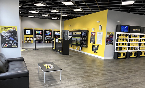 The showroom in the new Tint World Urbandale location features outstanding product displays.