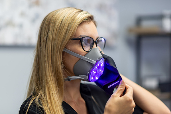 For years hospitals and labs have used ultraviolet light for disinfection and medical sanitation against viruses. Commonly known as “Ultraviolet germicidal irradiation,” UVGI is a disinfection method that uses short-wavelength ultraviolet light to kill or inactivate microorganisms by disrupting their DNA in a manner which renders the cells inactive and unable to perform cellular functions. Multiple tests have demonstrated that no measurable amount of UV-C light is directed towards the user wearing the device.