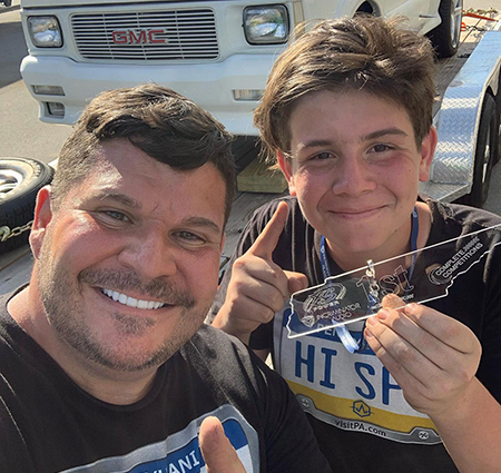 Father and Son, Thomas Greenage and son, are proud of the Tennessee shaped trophy.