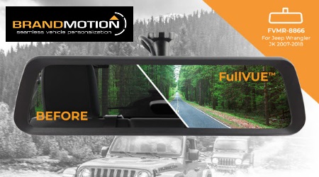 SOUTHFIELD, MI (02.11.2020) – Brandmotion has introduced the FullVUE Jeep Rear Camera Mirror. Brandmotion’s FullVUE Mirror/Rear View Camera for Jeep delivers a completely new driving experience for your JK by helping you see more than ever before.