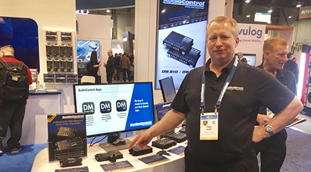 Chris Kane, AudioControl VP of Sales and Marketing, shows the new LC2i PRO and the LC1i in the AudioControl North Hall booth at CES 2020.
