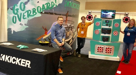 Jeremy Bale-Marine Audio Brand Manager, Lori Boyer and Colin Wilson traveled from Kicker World HQ in Stillwater OK to work with marine dealers from across the US. Kicker Marine Audio displayed the latest products in the lineup on the show floor and sponsored the evening industry celebration on Tuesday evening along with the band. Over 600 dealers and staff members benefitted from checking out the latest products, taking advantage of the educational platform and enjoyed an entertainment event on Tuesday evening.