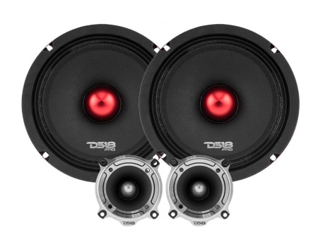 Extreme testing proved these two sets of speakers to be both very durable and able to handle high RMS power to give enthusiasts maximum loudness! The pack comes with a pair of DS18’s very popular Pro X6.4BM midrange pro audio speakers that include a bullet resonator. These 6.5’s come with 1.5” voice coils that handle 250w RMS at 4-ohm impedance. The 93dB sensitivity ensures the speaker gets loud even on lower power and handles max RMS power more efficiently.