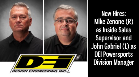 AVON LAKE, OH (10.17.2019) – DEI has announced two new supervisory positions. Former DEI employee Mike Zenone has been rehired as the company’s inside sales supervisor. John Gabriel has been hired as DEI’s powersports division manager.