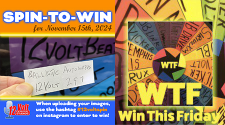 Past winners of the 12volt Spin-To-Win include…Stereo & Video Center-Tyler TX, The Outlaw Garage-Franklin TN, Exotic Sounds-West Palm Beach FL, Endless Possibilities-Aurora IL., Go Auto Sound in Union City NJ, Al&Ed’s South Bay CA, No Limitz Car Audio in Upland CA, Neil’s Specialty-Eureka CA, Sturgess Customs-Lexington SC, Audio By Art-San Antonio TX, SMS Car Audio in Marreo LA and Sweet Wheelz in Mississauga Ontario Canada, Cartronics in Biscayne FL, The CarAudio Shop in St Louis MO, Exotic Sounds in West Palm Beach FL, High North Customs in Grand Prairie Alberta Canada and AMS Audio in Bakersfield CA, Team QRT in Abbeyville LA and California Sound in Fontana CA and Jackie Cooper Electronics, Oklahoma City OK, MARS Audio-Orlando FL, All American Audio in Nutley NJ, Proline Car Stereo in Brooklyn NY, Custom Shop Miami, Tunes and Tint in Lakeland FL, Mobile Concepts Inc in Mokena IL, Seismic Auto Sound in Concord CA, Brooklyn Car Audio in Brooklyn NY, Audio Solutions in Florence MS, Enhanced Customs in Largo FL, Rayco Auto Clinic, Audio Design in San Jose CA, Go Bass Mode in Florida, Avenue Sound in Freeport NY, Audio Plus in Riverview FL, Stereo Zone in Whittier CA, In-Phase Car Audio in Omaha NE, AutoLife Group, N&H Electronics, SK Customs, Land & Sea, The Audio One, NC Custom Shop,Tint World Orlando, Ricky Smith’s Audio, VIP Custom Woks, Mobile Audio Concepts, Audio Lad, Sound Sensations, Dave’s Stereo, Stereo Design, Badlands Customs, Custom Audio-Erie PA, Voltz Autosports-Bridgeport CT, Infinity Sound and Security-Kissimmee, Autosport Plus-Canton OH, Stereo City Pros in Carmichael CA, Devine Concepts in Naples FL, The Sound Shop in Indian Trail NC, Extreme Performance Audio in Fresno CA, Audio Depot in Arlington TX, Audio Security in Houston TX, Earmark Car Audio and Marine in Lewisville TX, Audio Jam in Bear DE, Stereo City Ontario, Ontario CA, Audio By Art, San Antonio TX, Code Zero Customs in Tulsa OK, Ken’s Car Tunes in Mobile AL, Soundz Plus in Naperville IL, Markland Designs in Lithonia GA, Electronics Plus in Salinas CA, Xtreme Autosports in Santa Clarita CA, Superior Audio Sounds in San Angelo TX, Model Electronics in Ramsey NJ, Texas Dreamz Customs in Spring TX, Wired Electronics in Linden NJ and Intense Car Audio in OKC, OK, Underground Auto in Sarasota FL, Car Toys Tulsa in Tulsa OK, Real Audio in Erie PA, Go Autosound in Union NJ, DFM Stereo in Ukiah CA, Impact Tint and Audio in Tyler TX, Mobile Sound Systems in Arlington TX, Redline Audio and Performance In Spindale NC, Car Audio Land in San Diego CA, Audio X Custom Car Audio in Florence AL, River Oaks Car Stereo in Houston TX, American Radio Orlando in Sanford FL, Illustrious Customs in Woodbridge VA, Remote Start Pros in Lawrence MA, HiPro Audio in Victoria TX, AudioPlanetNY in Huntington Station NY, Endless Possibilities in Aurora IL, Audio Finesse in Santa Monica, Drive Customs in San Luis Obispo CA, Custom Works, Noblesville IN, AtoZ Detail in West Haven CT, Cars 843 in Charleston SC, CarTunes Atlanta in Atlanta GA, Mobile Concepts in Garwood NJ, Duke’s Car Stereo in Flint MI, Infinity Auto Sound, King Car Audio in Norwalk CT, PopTronics in Baltimore MD, Sanford Sound in Sanford ME, Angelvip2474 in Draper UT, Dynamic Car Audio in Baltimore MD, Hi-Pro Audio in Victoria TX, Car Stereo Max in Houston, Pro Audio Center in Richland MS, Rhodes Off-Roads in Farmington MO, Model Electronics in Ramsey NJ, Class A Sounds in Athens OH. Just Audio Video in North Providence RI, CT_Custom in Philadelphia, Audio Solutions in Florence MS and The Audio Shop RC in Rapid City SD, DG Motorsportz in High Point NC, ST Mobile in Texarkana TX, AR Custom OC in Orange CA, Temecula Mobile Sound in Temecula CA, Unique Auto Sound in Lindenhurst NY, D’s Garage in Corona CA and DS2 Mobile Solutionz in Tomball TX, C G Car Audio in Kissimmee FL, California Audio in West Valley City UT and The Action Audio Store in Wethersfield CT, Eclipse Car Audio in Vancouver WA, Electronics Depot Car Audio in Altamonte Springs FL. Car Audio Garage in Pearland TX, Pinnacle Autosound in Lake City FL, J H Audio in Bowling Green VA, The Car Audio Shop StL in High Ridge MO, Anthonys Car Stereo in North Highlands CA, Flynn Audio in Middleton WI, Living Loud Car Audio in Pelham AL, Trail Star Audio in Minnesota, On The Spot Audio in Pennsauken NJ, Animated Car Audio in Essex MD, West Coast Car Audio in Citrus Heights CA, Modified Auto Sound in East Alton IL, Star Car Audio in Hermiston OR, VapeNAudio in Clovis CA, SoundWorks in Millersville MD Eclipse Car Audio in Vancouver WA, J A Custom Audio in Houston TX Jose Electronics in North Hills CA, Sound Proof Car Stereo in Douglasville GA, Auto Additions in Springfield IL, Elite Car Audio in Hollywood CA, Masters Car Stereo in Greenville SC, Audio Plus in Eden NC, Seismic AutoSound in Novato CA, Car Audio Addicts in Pittsburgh PA and AudioKing Tinting in Yakima WA, Arias Tint and Alarms in Duncanville TX, Odeh Car Audio in Gadsden AL, 12volt Specialist in Newark DE, Cutting Edge Audio in San Diego CA, Southern Auto Fab in Lafayette LA, California Sound in Fontana CA, Big Boyz Toyz in Florence SC, 740 Audio in Athens OH and 12volt Outfitters in Hollywood FL., High Quality Auto Sound, Lawrence MA, Custom Car Stereo SC in Spartanburg SC, Zier Box in Dallas TX, Maximum in Manville NJ, Audio Car Stereo in Miami FL, Mach 1 Audio in Washington MO, Doren Car Stereo in Queens Village NY, Side-x-Side Audio in South Charleston WV, Sound Concept in Nanuet NY, Pda Road Gear in Littleton CO and A-Plus Audio and Tinting Newington CT, Audio Electronics in Indianapolis IN, Tint and Sound in Frederick MD, Tint World Wilmington DE, VIP Autoworks in Mentor OH, All Out Audio in Killeen TX, Yong’s Audio in Indianapolis IN, Custom Audio Concepts in Lima OH, Clear Vibrations in Quakertown PA, The Outlaw Garage in Columbia TN, Xpert Car Audio in Layton UT, No Doubt Window Tint in Ardmore OK, San Diego Car Stereo in San Diego CA, 