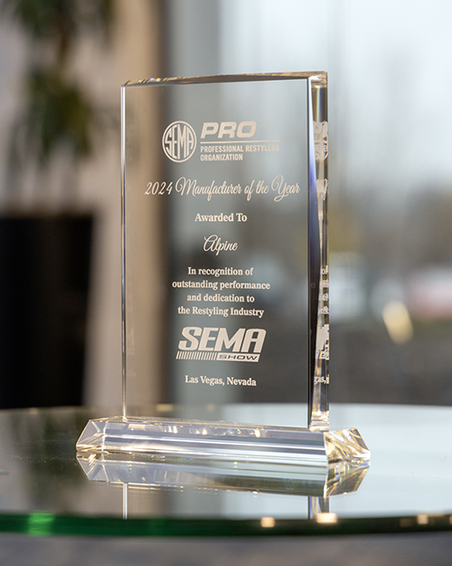 “Alpine is honored to be recognized by the SEMA PRO group as Manufacturer of the Year,” said Gregg Thomas, Director of National Sales for the Alpine Brand Division at Alps Alpine North America, Inc. “This award represents the dedication to quality and service demonstrated by our team members over the past five decades.”