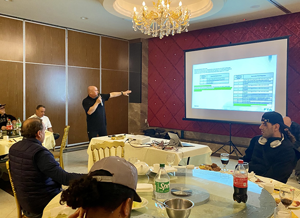 ADS Trainers Matt Yeager and Jenee Ewing. along with COMPUSTAR Trainer Jose Vazquez, make presentations for the very attentive audience. Albert Zhandi, East Coast USA owner, orchestrated the evening’s activities.