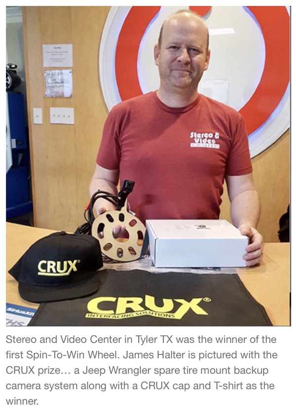 CRUX Interfacing Solutions was the first brand to award a prize and Stereo & Video Center was the first winner. The date was December 19th 2018. The latest 12volt Spin-To-Win Wheel Winner, Number 351, was J&A Electronics. The Wheel landed on the Massive Audio space Friday morning December 19th,
