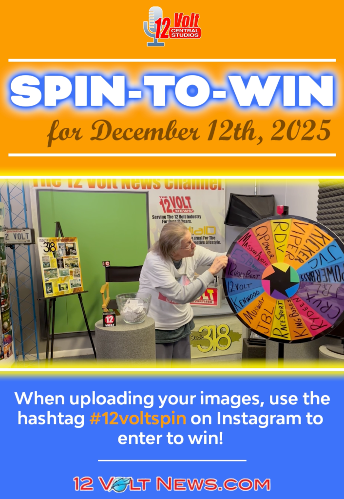 12VOLT CENTRAL STUDIOS (12.13.25) The 12volt Spin-to-Win Wheel was created to bring an element of fun to the 12volt industry. The weekly 12volt Spin-To-Win Wheel is now spinning in Year 7.
