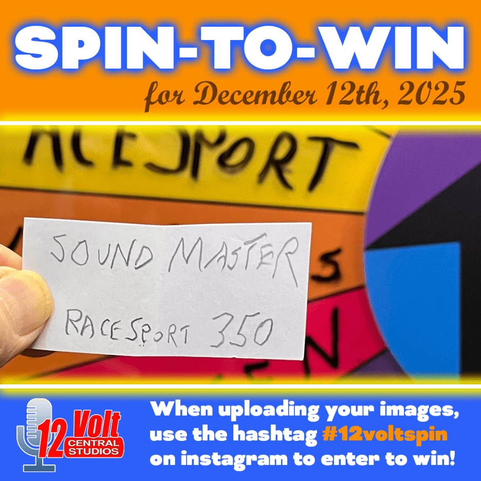 12VOLT CENTRAL STUDIOS (12.20.25) The 12volt Spin-to-Win Wheel was created to bring an element of fun to the 12volt industry. The weekly 12volt Spin-To-Win Wheel is now spinning in Year 7.