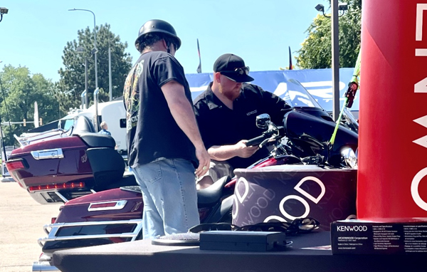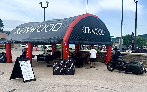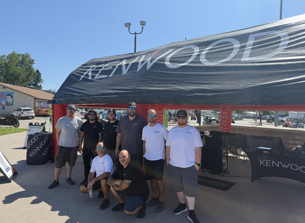 STURGIS, SD (08.07.25) – Once again, Kenwood has a very large footprint at the Sturgis Rally with terrific support from The Audio Edge and their team driving sales and installations in the Kenwood setup. Installations took place under large canopies adjacent to Kenwood’s footprint. Momentum Marketing team members Jimmy Bradfield, Gary Biggs and Ben Pugh are also on site supporting brands that Momentum Marketing represents in the TOLA territory.