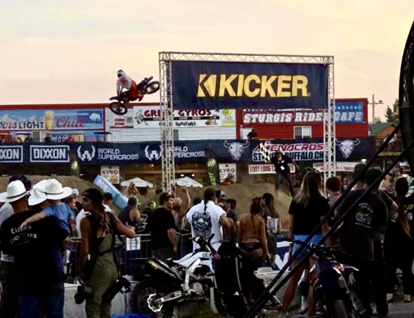 KICKER was livin’loud and flying high at the Arenacross Race at the at the Buffalo Chip during the Sturgis Rally.