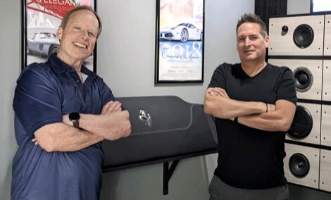 Scott Hochmuth pictured in his Buford office with a SoundSkins vehicle-specific kit… ready to hit the road.
