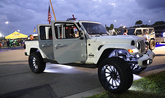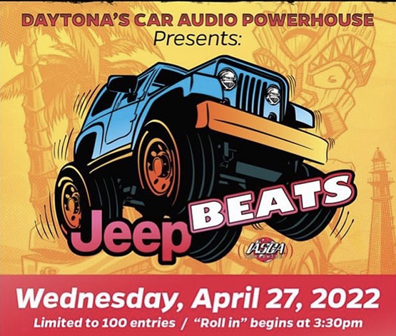 On Wednesday night at the Daytona International Speedway, Soundcrafters, Daytona’s Car Audio Powerhouse, in conjunction with IASCA, kicked off Jeep Beach’s Tiki Tailgate party. A packed house of Show and Shine Jeeps,Vendors and Sound & Light competitors dominated the lot flanking International Speedway Blvd. The 3rd annual Jeep Beats and JeepGlo Sound and Light competitions was judged by Terry Floyd of Soundoff Technologies, along with IASCA Judges Sammy Vega, Tony Pasquale and IASCA President Travis Chin; the judging was completed without a single glitch.