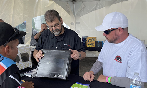 Alpine had a wide selection of vehicle specific products and showed several new Jeep specific models at Jeep Beach. The Alpine trailer provided air conditioned comfort for Jeepers as their installations were completed by Alpine and ROCO 4×4 techs in Speedway NASCAR garage pits. ROCO 4×4 is a proactive 12volt retailer in Doral FL. In the expansive Alpine booth a Jeep JK, Gladiator and JL were available for demos from staff members that included Roy Meyer and Eric Brooks.