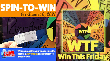 SHREVEPORT LA (08.07.21) WTF…Win This Friday. Car Audio Garage won the 12volt News Prize on the 12volt Spin-To-Win Wheel on Friday morning, August 6th.