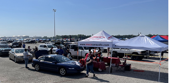 Both MECA and dB Drag Racing competitions occupied large areas on parking lots. MECA Commish Steve Stern relayed “Slamology this year was 5 lanes of SPL Madness. In addition we had 25 SQL competitors in the lanes. Slamology this year was definitely a record turn-out in the MECA lanes.”