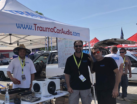 Trauma Car Audio with Damian, Paul and Steve (L to R) did a ton of demos for the company’s new Bluetooth Amplifier.