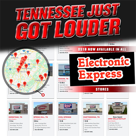 MIAMI GARDENS, FL (06.11.2021) – DS18, a well-known player in the audio industry, notorious for their stylish, clear sounding, trend setting audio equipment for cars, marine, and on-the-go. Their slogan, “We like it loud!” is taking on a whole new meaning for those in Tennessee and Alabama, as DS18 will now be available in all Electronic Express storefronts.