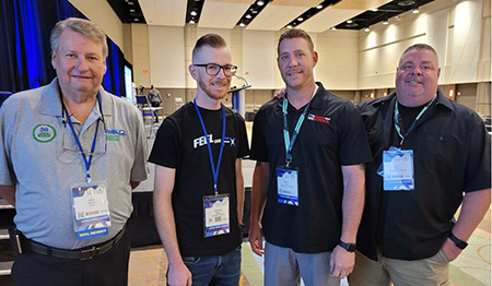 John Parker-IWFA Treasurer, Joshua Blake-Top North Tint owner with Darren Fettik and Jon Dewer-Window Tint School Founders (LtoR) on the floor at the Orange Country Conference Center. Blake is a student/graduate of the Window Tint School in Jacksonville, FL.