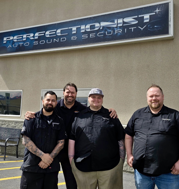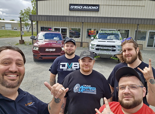 Out front of 5150 Audio (LtoR) Joseph and the team are pictured with Codie Dockter, Seth Payfer, Cody Wacker, and owner Dave Parrot.