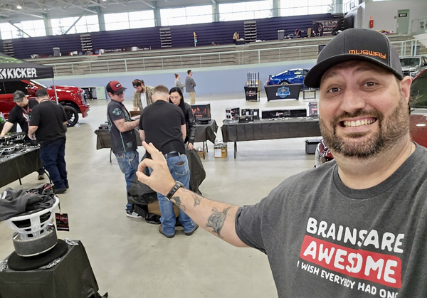 Alpine’s Jason Hannon it’s all smiles as he arrived at the Falcón Sales/AM Merchandising Show to spotlight cool Alpine demo cars.