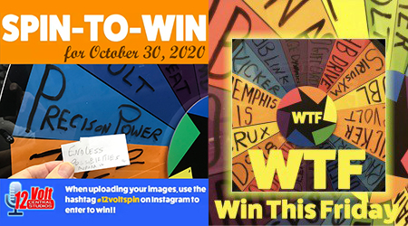 Stay tuned to 12voltnews.com on the web and @12voltnews on Instagram, Facebook and Twitter for 12volt Spin-To-Win winner announcements every Friday!