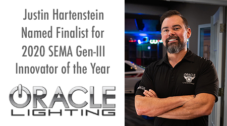 METAIRIE, LA (10.23.2020) -Oracle Lighting has announced that for the second year in a row, founder Justin Hartenstein has been named a finalist for the prestigious SEMA Gen-III Innovator of the Year. Hartenstein was also a 2019 finalist.
