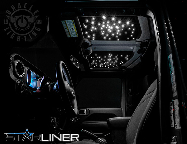 “Our new StarLINER panels are self-contained acoustic panels with integrated fiber optics which create a unique ‘Starlight’ effect on the ceiling of your hardtop,” said Justin Hartenstein, Oracle Lighting director of development. “These eye-catching panels easily mount to the hardtop ceiling with the included mounting hardware. Wiring simply connects to the nearby courtesy light for power and features quick connect plugs for easy hardtop removal.”