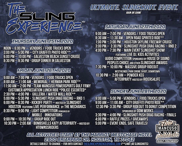 THE 12VOLT CENTRAL STUDIOS (07.08.2020) – The Sling Experience was originally scheduled for April. Due to COVID-19 the event was rescheduled to June 25th through the 28th. Over the weekend the event lit up Houston. The huge grounds surrounding the Marriott Westchase Hotel for the national event was filled with over 30 exhibitor setups and over 300 Slingshots. Live DJ, kids activities, food trucks, audio competition, lighting competition, People’s Choice Awards, donut competitions, after party and more were on the schedule.