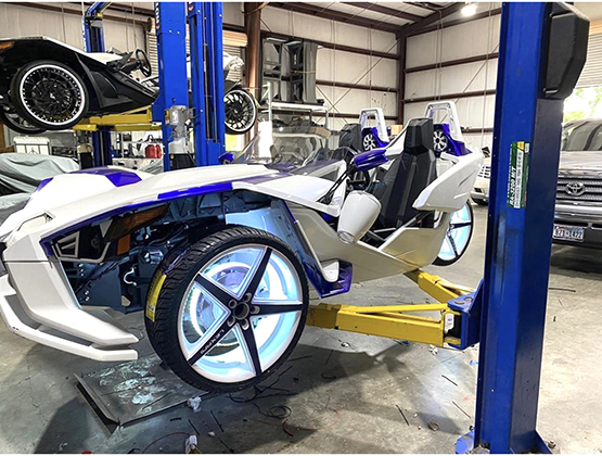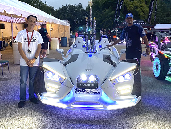 House of Sound Car Audio is a huge player on the Slingshot scene in Houston and sponsored the audio competition at the Sling Experience. Owner Alex Restrepo related “This year’s Sling Experience, the second annual was truly amazing. We had our work on 33 of the Slingshots showing at the event. Audio, lighting, wheels, graphics and air ride systems are big product categories for aftermarket add-ons for Slingshots. DS18, Beyma, db Drive and PRV are audio brands we installed on Slingshots at the event.