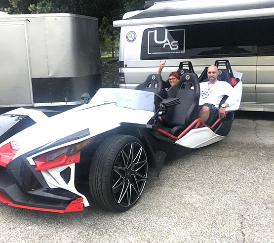 Jack Polubinski, Underground Auto Styling, made the trip from Sarasota FL to The Sling Experience with his Slingshot in the trailer. “At our retail store we have been working with Slingshot projects for several years and actually produce quite a few items that are used to customize Slingshots. This category is red hot for us and we see it continuing to grow. Events like The Sling Experience accelerate that growth. Right now we are working on our 4th custom Slingshot for the one and only Shaq. One of our projects with him was on display at CES and SEMA”