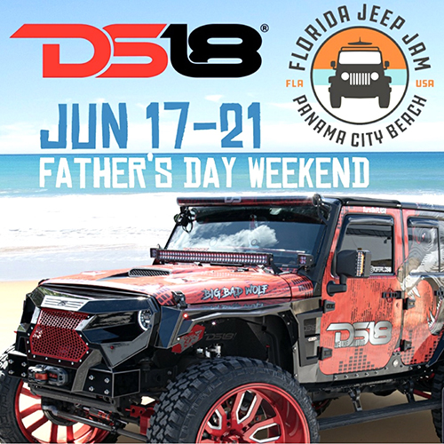 MIAMA GARDENS, FL (06.18.2020) – Father’s Day Weekend will be a blast! Yes, a literal audio blast from DS18 at Florida Jeep Jam in Panama City Beach. This Jeep event, June 17th-21st, is like no other in Florida and is one of the largest in the nation with a HUGE community of Jeepers driving from half a nation away to attend.