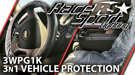 RINGWOOD, IL (06.24.2020) – Race Sport Lighting is excited to announce the launch of their Race Sport Lighting’s 3-in-1 automotive protection kit. Designed for businesses who service any type of customer vehicles, to provide a simple layer of protection for porters, installers and technicians from potential transmission of germs, bacteria and viruses.