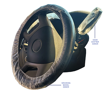 This kit features a recyclable slipcover for three of the most common surfaces technicians come in contact with while servicing a vehicle. One protective cover for the steering wheel, one for the gear shifter and one for the driver’s seat.