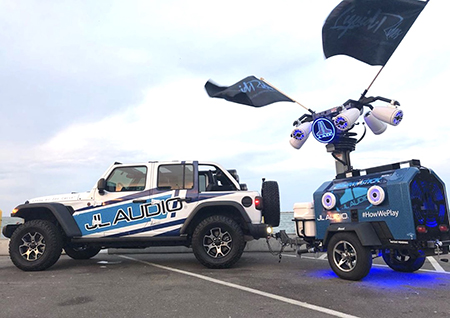 Brian Tolley, Team Sales, is the area representative for JL Audio and counts Liquid Rides as a key customer in the rep firm’s territory. Tolley related “Kevin came to us with this idea maybe 3 years ago. It was certainly a very interesting idea. We knew Kevin and Liquid Rides did top work so we presented the idea to JL Audio HQ. They approved the plan and we got started with the original model, called the BoomStick at the time. We hooked the BoomStick to the trailer hitch on the back of one of our vehicles and hit the road. We used it with dealers in our Texas, Oklahoma, Louisiana and Arkansas territory. We also used it at a variety of trade shows and events like the Texas HeatWave. At all events it was a draw and crowd pleaser. We are happy to see Kevin taking his idea to the next level with the LvLuP Audio Party Tower.”