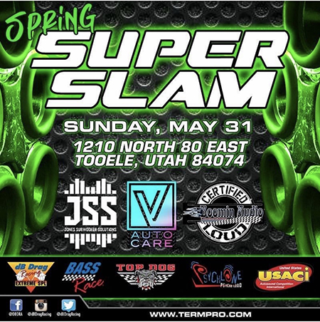 The Boomin’ Audio Spring Super Slam filled the V Auto Care parking area in Tooele UT on Sunday, May 31st. Andy Teuscher relayed “This is a great way to start the competition season. There was a lot of excitement from dB Drag Racing and USACi competitors. Jeffrey Fernandez traveled in from SoCal and we both stayed super busy judging in the lanes and meeting with competitors. The Jones Subwoofer Solutions and V Auto Care teams really worked to make all come together for a super event”