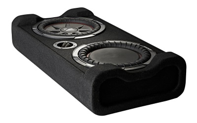 Included in each enclosure is the popular KICKER CompRT thin subwoofer, alongside a resurgent reFLEX passive radiator for a significant upgrade in bass without increasing overall depth. Barely five inches high, TRTP Enclosures are built to fit anywhere from behind the seat of a pickup to the back cargo area of a hatchback. The down-firing design allows it to fit in tight spaces, yet still deliver peak performance. The rugged enclosures design has the added benefit of allowing items to be stacked on top of it for max cargo space. TRTP Enclosures are carpeted and custom embroidered with the KICKER logo.
