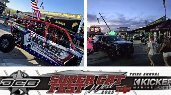 LAKE HAVASU, AZ (04.21.25) – The Super Cat West Fest 2025, with sponsor KICKER, returned to the Havasu Riviera Marina April 10th thru April 13th. The KICKER XRV was on the ground showcasing KICKER Livin’Loud Audio, Powersports and numerous ski and pontoon boats were on the water in the marina and dockside.