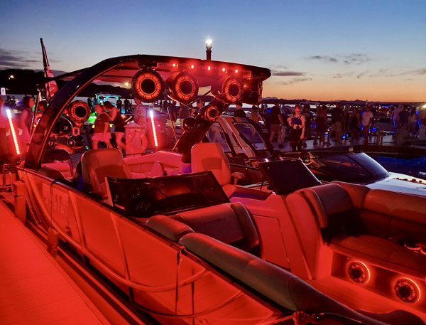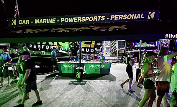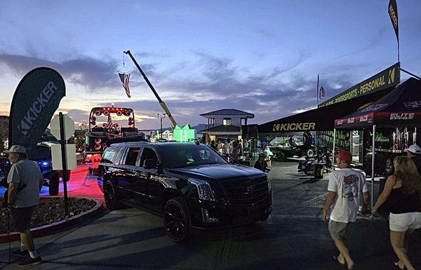 “Local retailer Elite Audio spotlighted their KICKER equipped Tri-Toon with SOLO X subs along with their deck boat. The two were connected soundwise so Jeff, Shawn and Christine were definitely Livin’Loud in the marina. The lighting on many of the boats in the marina and harbor was out of this world at night time. The fireworks over Lake Havasu during the dock party really lit up the sky” Morrell concluded.