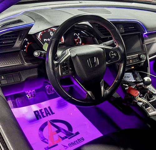 Audio Anarchy does a big job with interior lighting which really spotlights this floor mat in the customers car.