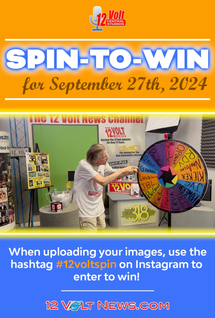 12VOLT CENTRAL STUDIOS (09.28.24) The 12volt Spin-to-Win Wheel was created to bring an element of fun to the 12volt industry. The weekly 12volt Spin-To-Win Wheel is now spinning in Year 6.