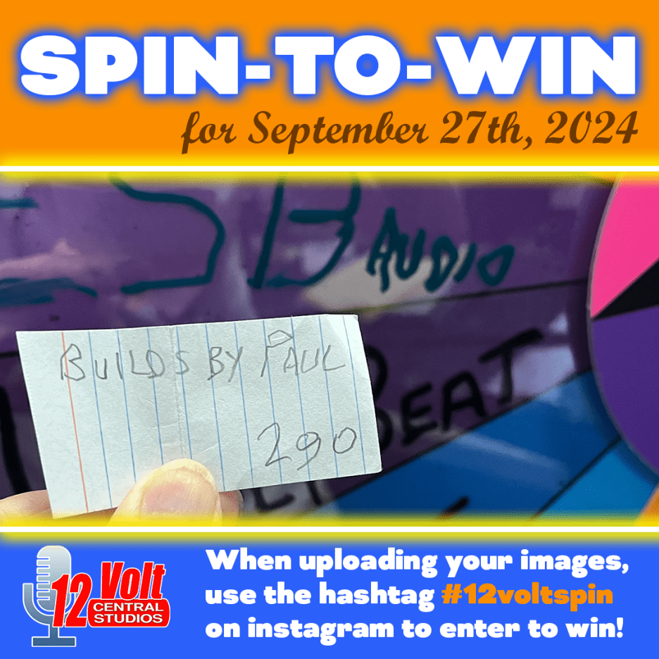 The 12volt Spin-To-Win Wheel rolled for the 290th time on Friday morning on September 27th. The Wheel landed on the ESB Audio space and the Builds By Paul slip was drawn from the jar. An Instagram post of the winning spin slip was posted. A video of the Wheel spin was also posted.