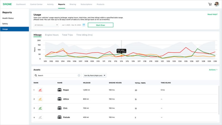 New Reporting Suite – DroneMobile users can now pull and export detailed reports about their vehicle health, usage, and safety.