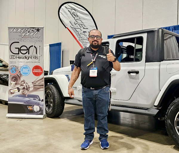Ignacio Ayala, pictured at a recent show, looks forward to show dealers the latest Race Sport Lighting products on this Jeep.