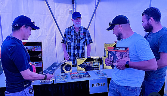 Tom Ebeling shows the KICKER speaker show package to dealers.